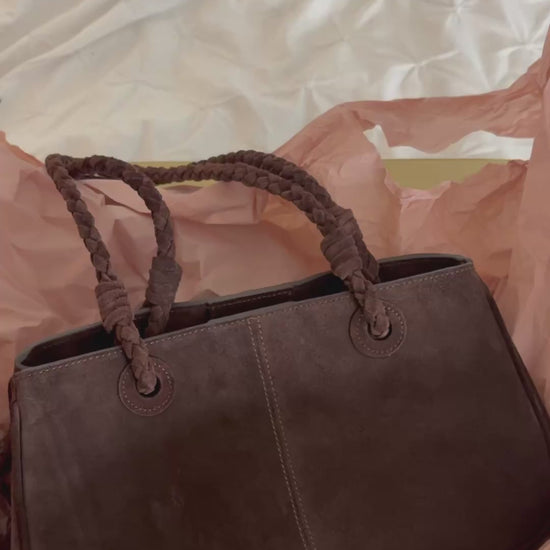 • Suede shoulder bag with braided top handles